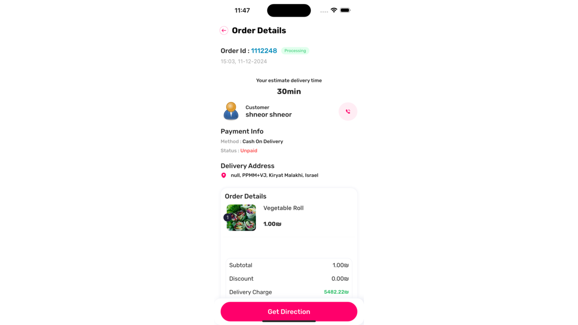קבלת עדכונים בזמן אמת על סטטוס ההזמנה.