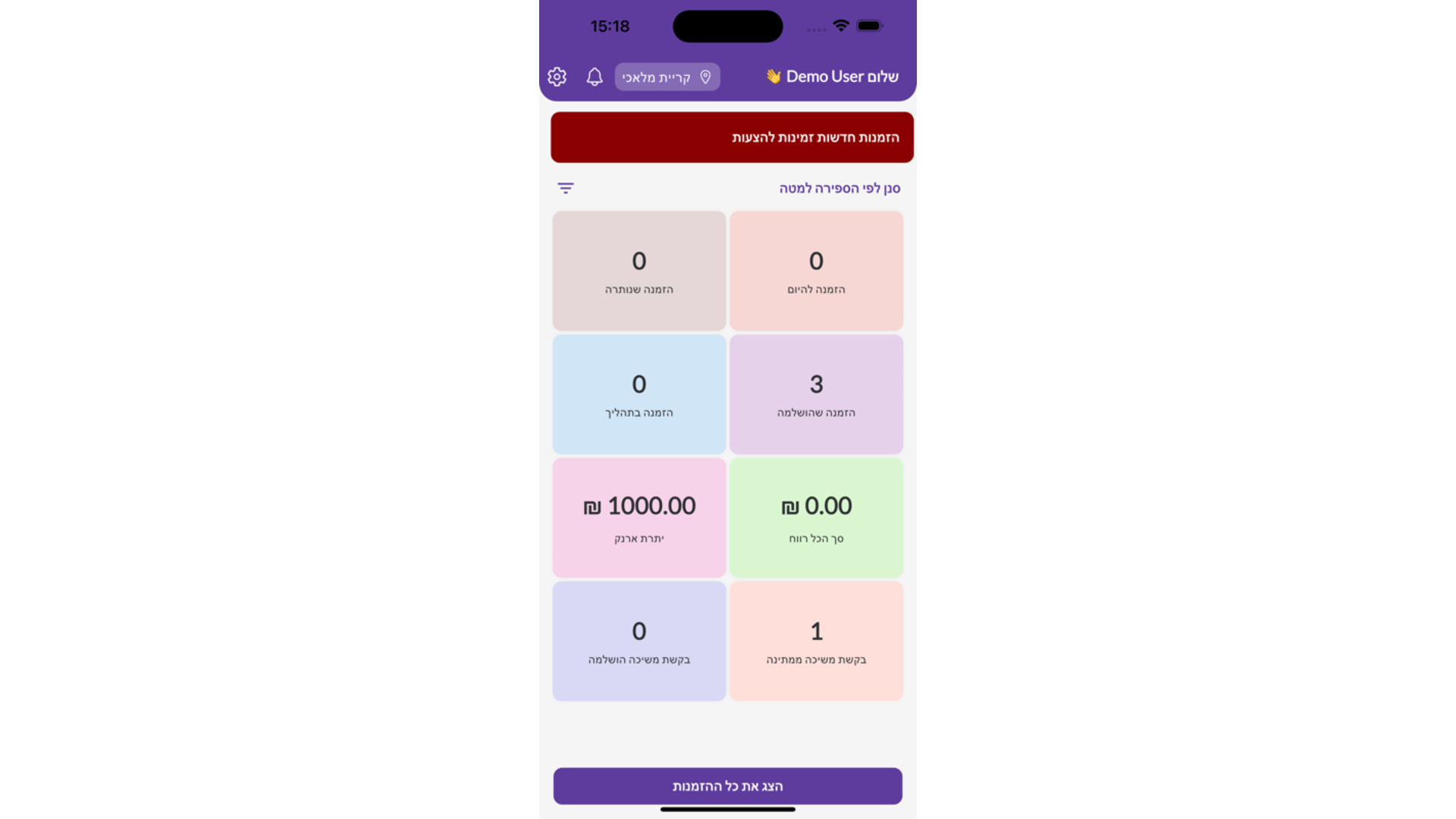 המערכת מבוססת על מודל עבודה מודרני וגמיש: השליחים מנהלים את עצמם, בוחרים אילו משלוחים לבצע, ומקבלים עדכונים בזמן אמת על הזמנות חדשות. עם ממשק ידידותי ונוח, הם רואים את כל פרטי ההזמנה – כתובת איסוף, כתובת יעד, תשלום צפוי ומעקב מסלול. המערכת משתמשת במיקום גיאוגרפי מתקדם כדי להציע לכל שליח משלוחים קרובים אליו, כך שהעבודה מתבצעת ביעילות מקסימלית.
