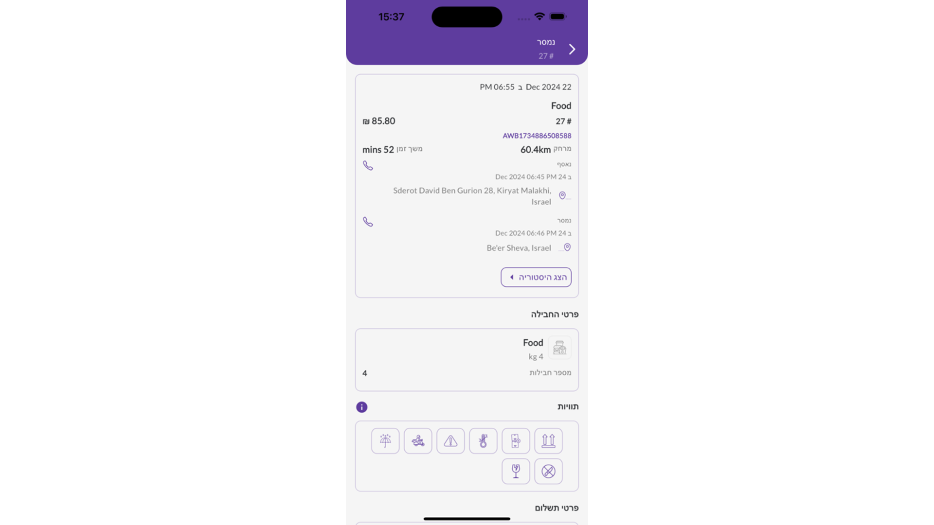 בצד המשתמשים, המערכת מספקת חוויה פשוטה ומובנת: כל לקוח פרטי, חנות או עסק יכול להזמין משלוח בקלות – פשוט ממלאים פרטי איסוף ויעד, מוסיפים פרטי חבילה, והמערכת דואגת לשידוך עם שליח זמין בקרבת מקום. לקוחות מקבלים עדכונים שוטפים לגבי מצב המשלוח, כולל מעקב בזמן אמת על מיקום השליח, זמני הגעה משוערים והתראות אוטומטיות.