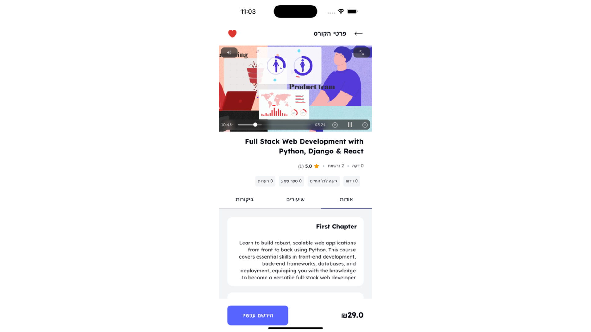 אפשרות להעלות קורסים עם וידאו, טקסט, מסמכים ותוכן עשיר.