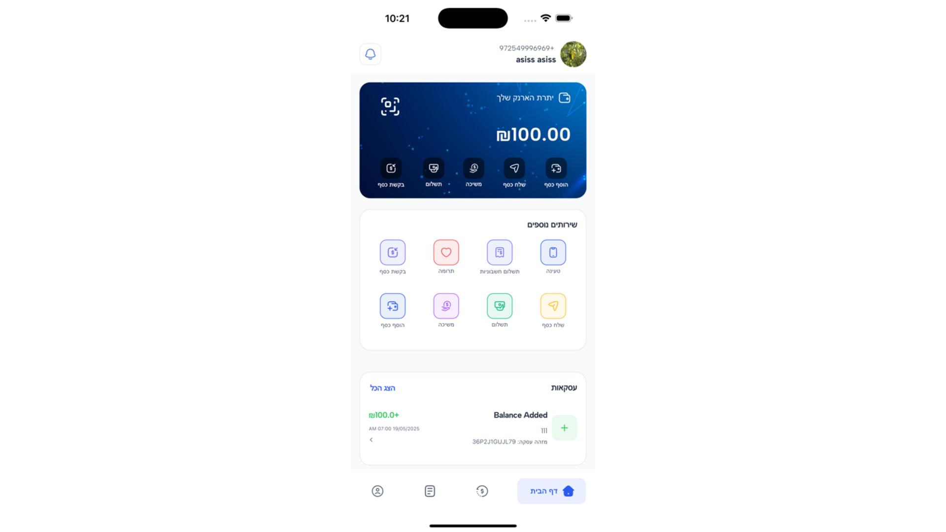 אפשרות למשיכת כספים והפקדות בצורה פשוטה.